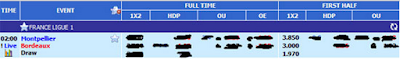 Pada contoh ini, pasaran untuk FT 1×2 kami ambilkan dari pertandingan antara Montpellier vs Bordeaux.